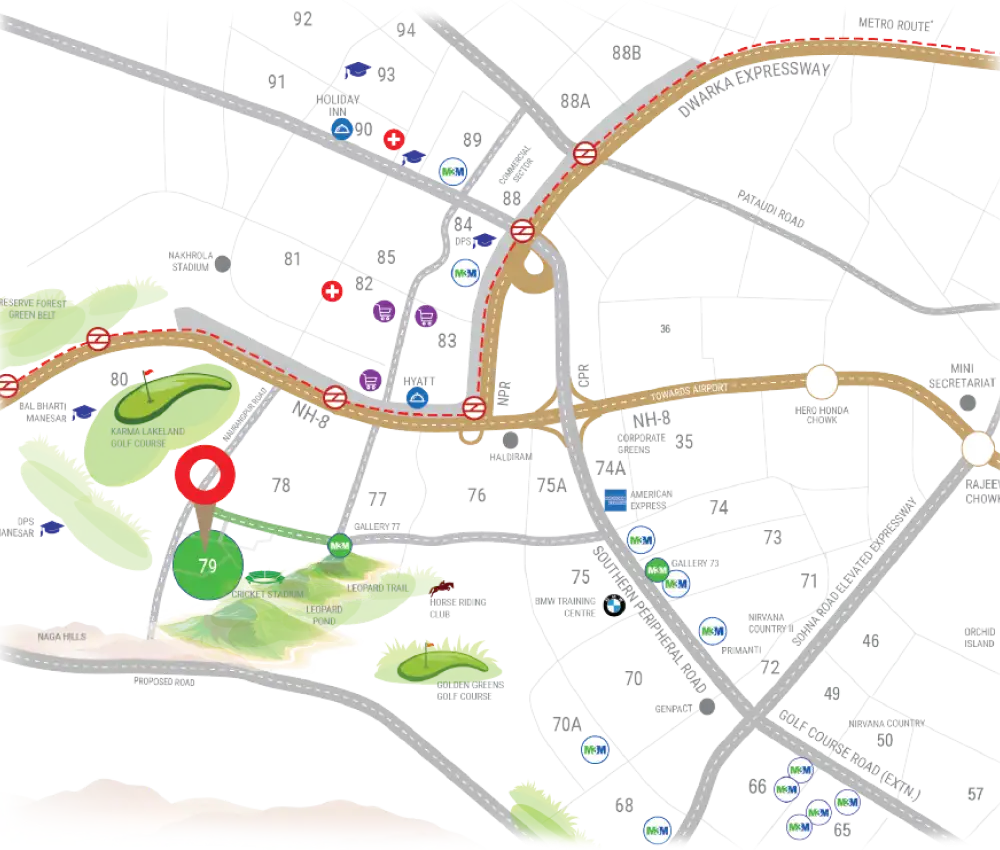 Next to huge commercial hubs (Sector-74A and 75A, Gurugram).